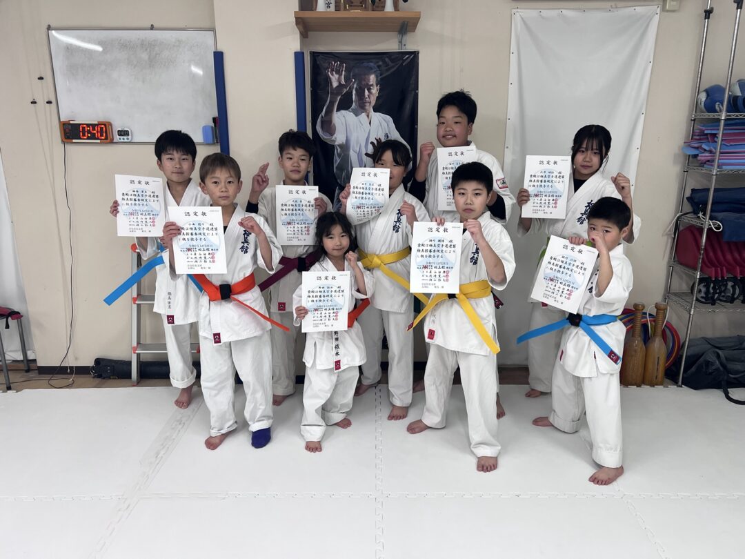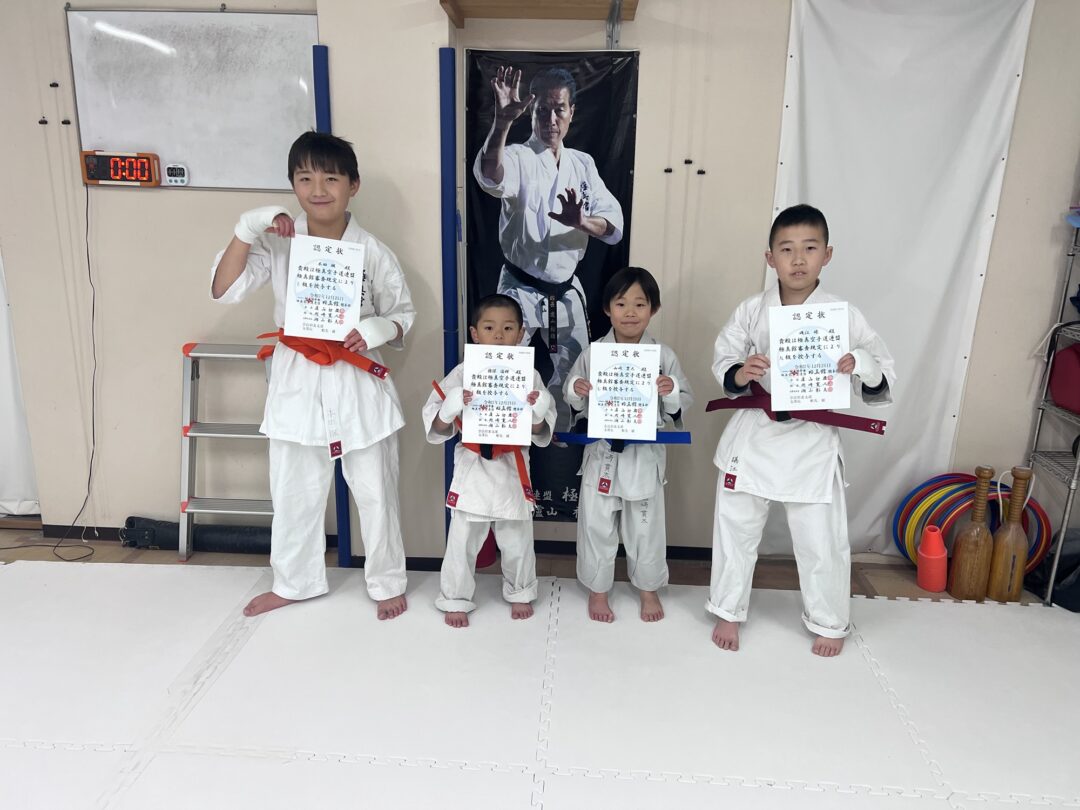 昇級者に帯と認定状を渡しました。